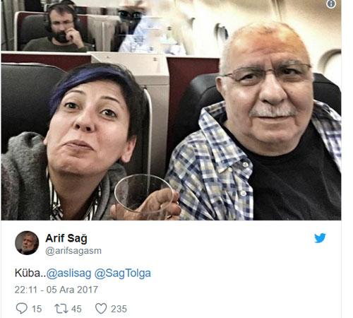 Arif Sağ’ın twitter hesabından Aslı Sağ’la beraber fotoğrafı paylaşılırken bir diğer paylaşımda ise Arif Sağ’ın Küba’ya gittiği açıklandı.