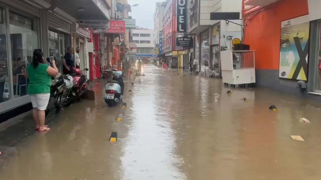 İlçenin farklı bölgelerinde yağış dolayısıyla bazı ev ve iş yerlerini su bastı.