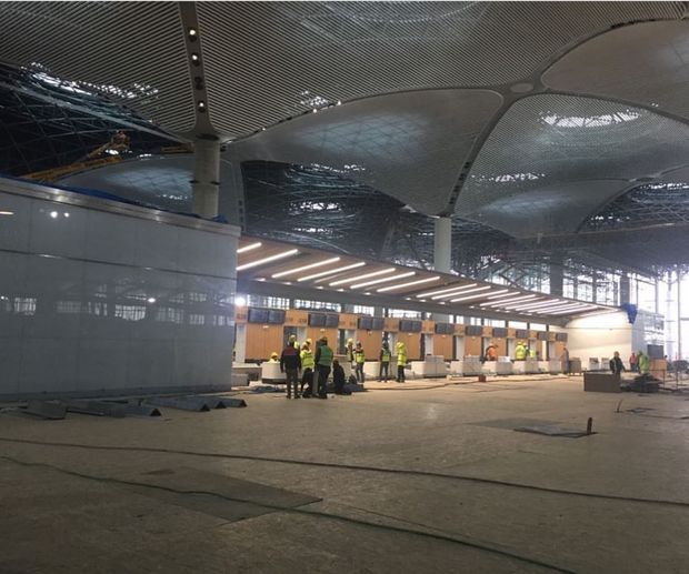 Dünyanın en büyüğü olacak İstanbul Yeni Havalimanı’nda inşaat sürecinde bir ilk daha yaşandı. Terminale biniş bankoları da konulmaya başlandı.