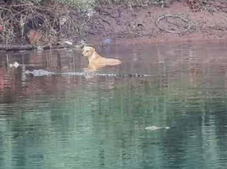 Başıboş olduğu düşünülen köpek, bir yabani köpek sürüsü tarafından kovalanırken Hindistan'daki Savirtri Nehri'ne atlayarak tehlikeden kurtuldu ya da öyle olduğunu sandı.