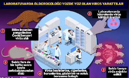 Pekin'de görevli bilim insanlarının, "insanlaştırılmış farelerde" yüzde yüz ölümcül olan tehlikeli bir mutant Kovid-19 virüsü geliştirdiği ortaya çıktı. GX_P2V olarak kodlanan bu virüsün, genetik olarak bir insana benzer şekilde davranmaya zorlanan farelerin beyinlerine saldırdığı ortaya çıktı.