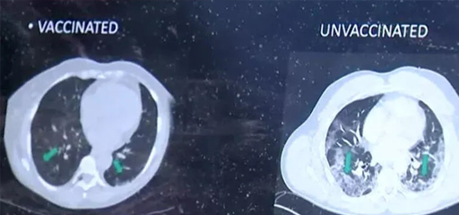 (Awan görüntüdeki siyah kısımların oksijen olduğunu belirtiyor. Aşılanmamış kişide (sağda) oksijen miktarının daha az olduğu net bir şekilde görülüyor.)