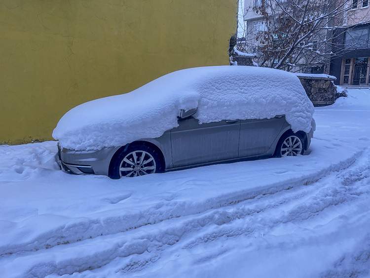 Kar yağışıyla kent merkezinin beyaza büründüğü Erzurum'da, cadde ve sokaklar, park halindeki araçlar karla kaplandı.