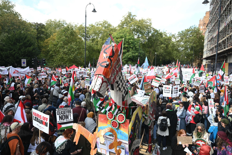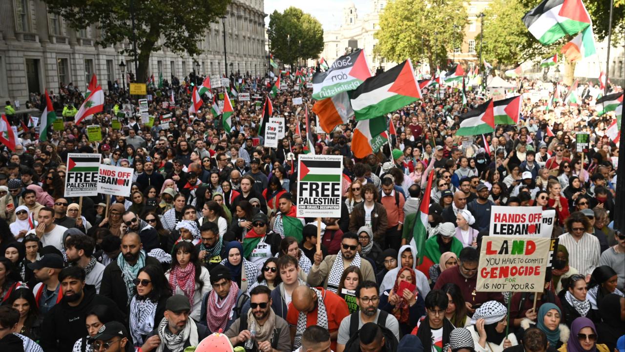 İngiltere'de yüz binlerce kişi İsrail'in Gazze saldırılarının birinci yılında Gazze'de ve Lübnan'da acil ateşkes ile İngiltere'nin İsrail'e silah satışını durdurma çağrısıyla yürüdü.