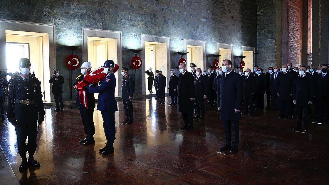 Erdoğan, kırmızı beyaz karanfillerden ay yıldızlı çelengi, Atatürk'ün mozolesine bıraktı. Atatürk'ün 82 yıl önce vefat ettiği saat olan 09.05'te saygı duruşunda bulunuldu ve ardından İstiklal Marşı okundu.