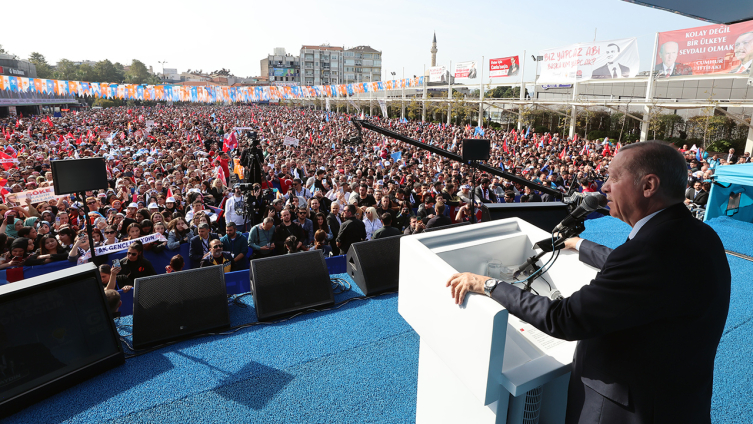 Biz bu ülkede 21 yıldır sadece eser ve hizmet siyaseti yaptık. Türkiye'nin asırlık ihmallerin ürünü tüm alt yapı eksiklerini gidermek, milletimizi hayalleriyle buluşturmak bize nasip oldu. Sadece somut projelerle kalmadık, hak ve özgürlüklerin geliştirilmesi konusunda da devrim mahiyetinde düzenlemeleri hayata geçirdik. Her alanda sorunları çözerken asla kimsenin inancına, meşrebine, hayat tarzına, kökenine, şehrine bakmadık. Siz birilerinin yaptıkları eski Türkiye güzellemelerine sakın kulak asmayın. Milletçe cumhuriyet tarihinin en müreffeh ve demokratik dönemini son 21 yılda yaşadık. Ülkemizin en iddialı kalkınma programı olan 2023 hedeflerini biz hayata geçirdik. Ülkemizin güven ve istikrar iklimine, demokrasisine, bağımsızlığına kasteden saldırılara ilave olarak küresel ve bölgesel krizlerin yansımalarından kaynaklanan o sıkıntılar bu hakikatin üzerini örtemez. Nitekim biz ülkemiz ve milletimiz için en iyisini hedefleyerek yolumuza devam ediyoruz.