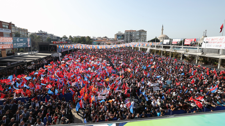 Aydın geçtiğimiz mayıs ayında yapılan cumhurbaşkanlığı ve milletvekilliği seçiminde yaklaşık yüzde 40 düzeyinde bir oy ile yanımızda yer aldı. Bu oy oranı Aydın ile bizim aramızdaki gönül bağını ifade etmekten çok uzak. İnşallah 31 Mart'ta Aydın'dan büyükşehiri ve ilçeleri ile müjdeli haberler bekliyoruz. Az önce sordum meydanda durum nedir? Katılım 52 bin kişi dediler. Bu ne demektir? 31 Mart'ta sandıkları patlatmaya hazırlanıyoruz.
