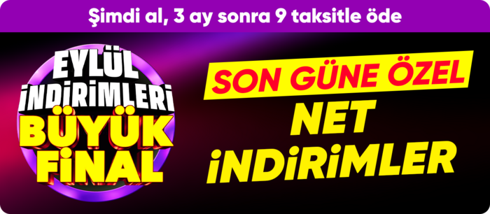 Eylül İndirimleri Büyük Final’e özel net indirimlerde teknoloji ve ev ürünlerinde çeşitli indirimler sunulacak. Elektrikli küçük ev aletlerinde ve beyaz eşyalarda sepette %10 indirim uygulanacak, seçili televizyonlarda ise sepette net %5 indirim fırsatı müşterilere sunulacak. Telefon kılıfı ve ekran koruyucularda %20, Anker hızlı şarj grubunda ve Spigen ürünlerinde sepette net %20 indirim yapılacak. Ayrıca, tabletlerde ve giyilebilir teknoloji ürünlerinde sepette %5 indirim fırsatı sağlanırken, bilgisayar ve ekipmanlarında sepette net %5 indirim geçerli olacak. Seçili televizyonlarda sepette %5 net indirim fırsatı sunulurken, bluetooth hoparlörlerde sepette %10 net indirim avantajı sağlanacak.