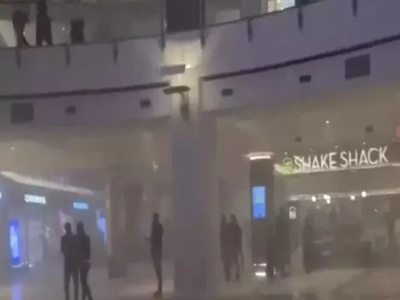 Yangın nedeniyle alışveriş merkezinin içini duman sardı.