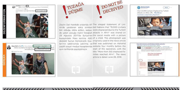 PKK/KCK/PYD-YPG ve DEAŞ terör örgütü mensubu ile yandaşlarının başka ülkelerde, farklı zamanlarda gerçekleşen olaylara ilişkin görselleri, harekat kapsamındaymış gibi Türkiye ve dünya kamuoyunu yanıltmak için yürüttükleri kara propaganda üzerine, gerçeklerin ortaya konulduğu bir kampanya gerçekleştirildi.