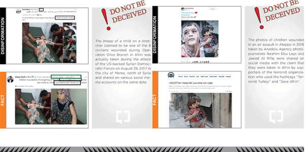 Terör yandaşlarının çabalarını boşa çıkarmak, harekatın bölge ve dünya kamuoyu tarafından doğru bilinmesini sağlamak amacıyla Anadolu Ajansı (AA), TRT ve BYEGM uzmanlarınca tespit edilen ve tüm dünyada dezenformasyon içerikli paylaşımlarda kullanılan görsellerin gerçek yer ve zamanlarını gösteren bir çalışma başlatılmıştı.
