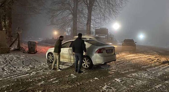 Trafik ekipleri de sürücüleri kar yağışı nedeniyle kayganlaşan yolda dikkatli olmaları konusunda uyardı.