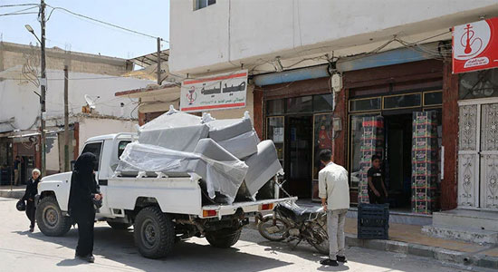 Tel Abyad ilçe merkezinde çarşı düzeni ve işletmelerin faaliyetlerini rutin akışında sürdürdüğü görülüyor.