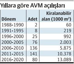 Hayalet AVM’lere dönüşen yapılar arasında ise Metrocity’den Novada’ya, Beylicium’dan Prestige Moll’a, Airport Outlet Center’dan Galeria’ya, Bayrampaşa Axis’ten Sapphir'e kadar onlarca AVM bulunuyor. Bunun yanında İstinyePark’tan Zorlu’ya, Akmerkez’den Cevahir'e kadar birçok AMV için de aylarca sıra bekleniyor..