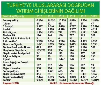 Son 6 yılda imalat sanayiine 18 milyar dolar, elektrik ve gaz sektörüne 11 milyar dolar, finans ve sigorta sektörüne 28 milyar dolar doğrudan yabancı sermaye girişi oldu.