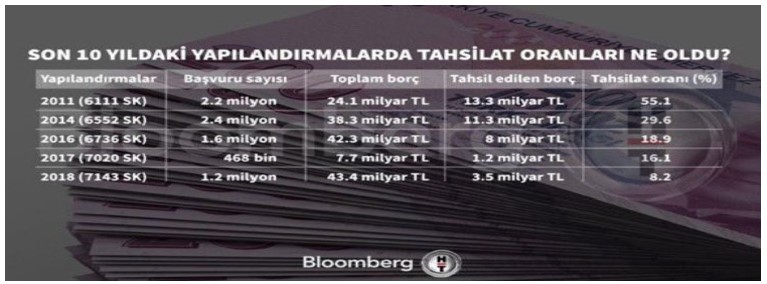 Son 10 yıllık verilerden de görüleceği üzere yapılandırılan borç miktarı artmış olmasına rağmen çıkan her yeni mali afla birlikte tahsil edilen vergi vb.gibi mali yükümlülük miktarı tutarsal ve oransal azalmıştır. Bu durum bize Hazine’nin mali aflardan bekleneni elde edemeği gibi, toplumsal mali bilincin ve ahlakın da erezyona uğramış olabileceğine işaret etmektedir.