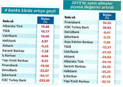 "2015, hem Türkiye hem dün¬ya için zorlu bir yıldı" diyen Yapı Kredi CEO'su Faik Açıkalın da yüzde 21 aktif artışıyla adını başa¬rılılar listesine yazdırdı. Yönetici, 2013'te uygulamaya başladıkları "büyüme odaklı yatırım" strateji¬lerini sürdürdüklerini ve bu çer¬çevede kredilerini geçen yıla göre yüzde 22, toplam menkul kıymet portföyünü de yüzde 25 büyüttük¬lerini açıklıyor.