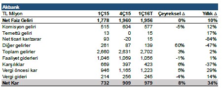 Akbank'ın IÇ'de net karının çeyreksel bazda %8 büyümesini bekliyoruz. Bu artışta yatay kalan faaliyet giderleri, ticari kar, temettü geliri ve takipteki kredilerin satışından elde edilen 49mnTL'lik gelirin etkili olmasını bekliyoruz. Net faiz marjının çeyreksel bazda neredeyse yatay kalmasını öngörüyoruz. Zayıf kredi büyümesi ile daha düşük genel karşılık gideri olmasını ve mevsimsellik nedeni ile çeyreksel bazda komisyon gelirlerinde düşüş öngörüyoruz.