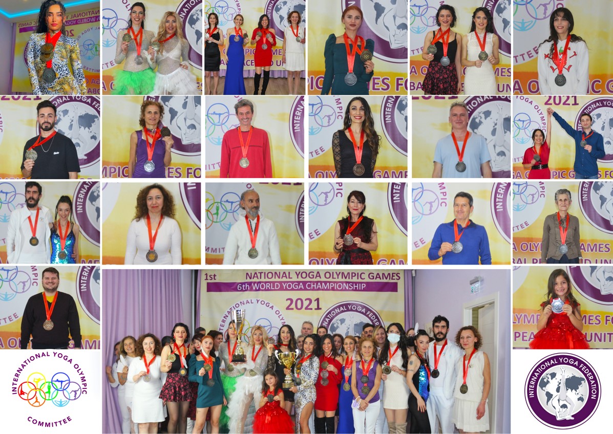 Altın madalya kazanan Yoga Olimpiyat oyuncuları; Yoga Akrobatik kategorisinde Tuğçe Kalkuz ve Mustafa Çilek’ten oluşan takım, Yoga Artistik kategorisi kadınlarda Çiler Karataş, Yoga Asana kategorisi kadınlarda Nava Nur Tüzüner, Yoga Asana kategorisi erkeklerde Emre Koçak, Yoga Asana kategorisi 50+ kadınlarda Serpil Gökhan, Yoga Asana kategorisi 50+ erkeklerde Mehmet Bora Kızılay, Yoga Asana kategorisi kızlarda Melek Nilsu Coşkun, Yoga Atletik kategorisi kadınlarda Nava Nur Tüzüner, Yoga Koreografi kategorisinde Merve Tanrıverdi, Selva Arı, Musab Kendirci ve Cabrayil Mammadli’den oluşan takım, Yoga Dans kategorisinde Pelin Duman ve Sevgi Alıcı’dan oluşan takım, Yoga Akışı kategorisi kadınlarda Sema Gümüş, Yoga Akışı Kategorisi erkeklerde Zeynel Türk, Yoga Akışı kategorisi 50+ kadınlarda Birgül Yeniçeri, Yoga Akışı kategorisi 50+ erkeklerde Saim Haholu, Yoga Akışı kategorisi kızlarda İkra Buse Şeker, Yoga Ritmik kategorisinde ise Birgül Yıldırım, Şirvan Yücel, Neval Kütük ve Burçin Akhan’dan oluşan takım oldu.