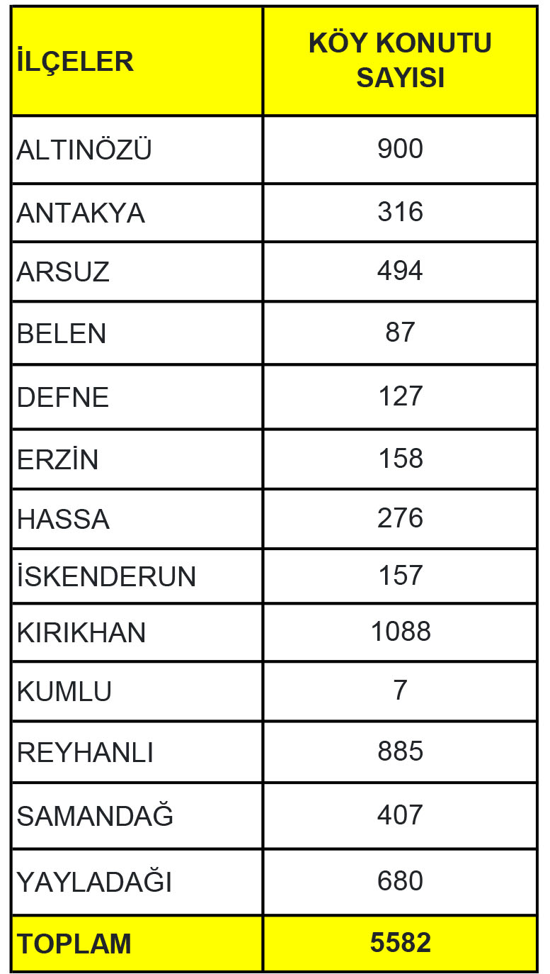 Hatay'ın ilçelerine göre inşa edilecek köy tipi afet evlerinin sayısı şöyle: