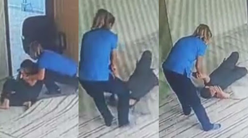 Gümüş’ün, odanın kapısında sandalyede otururken yanında yerde yatan engelli bir çocuğun bacağını çimdiklemesi üzerine sinirlenip, yüzüne ayağı ile vurduğu, ardından kollarından tutup üzerine bastırdığı görüldü.