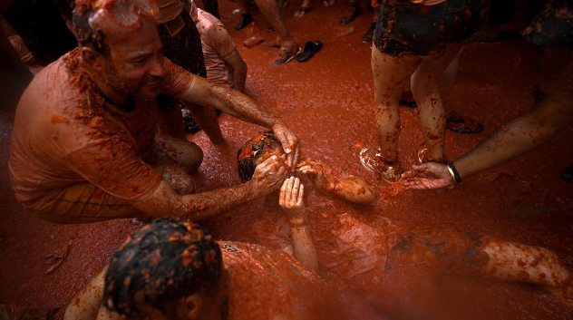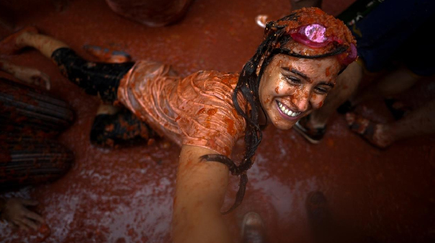 İspanya’nın doğusundaki Valensiya kentine bağlı olan Bunol'da, bir dönem yasaklansa da 1945 yılından bu yana süregelen bir gelenek olan ve her ağustos ayının son çarşambası gerçekleşen La Tomatina festivali, bu yıl da kasaba sokaklarını kırmızıya boyadı.