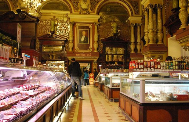 1901 yılında zengin bir Rus tüccarı olan Grigory Eliseev tarafından açılan Eliseyev marketi, o zamanlar hiç bir yerde bulunmayan ithal gıda ürünleri ve şaraplarıyla Rusya’nın en lüks marketi olmuştu. Özellikle bulunduğu lokasyonu ve iç mimarisi ile müzeye benzeyen market, turistler tarafından da ziyaret edilen yerler arasındaydı.