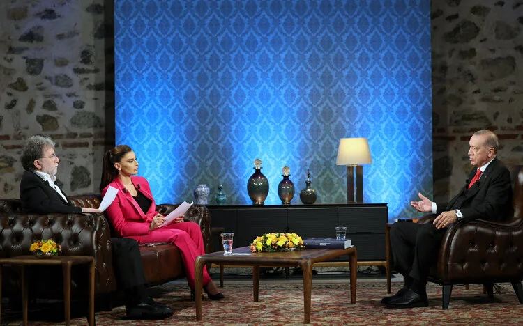 Erdoğan, "Siz kazanmazsanız, öyle bir olasılık olursa, o zaman kimler kaybedecek?" sorusuna da "Şimdi varsın birileri gerilimle, kutuplaştırmayla, yani siyaset dilini zehirlemek suretiyle yol almaya çalışsın. O bizi ilgilendirmiyor. Biz milletimizi kucaklamaya devam edeceğiz. Bu bizim aynı zamanda kültürümüzden de gelen bir anlayış. Buradan taviz veremeyiz. Bunun için de Allah'ın izniyle 28 Mayıs'ta biz kazanırsak 85 milyonun her bir ferdi kazanacak." yanıtını verdi.