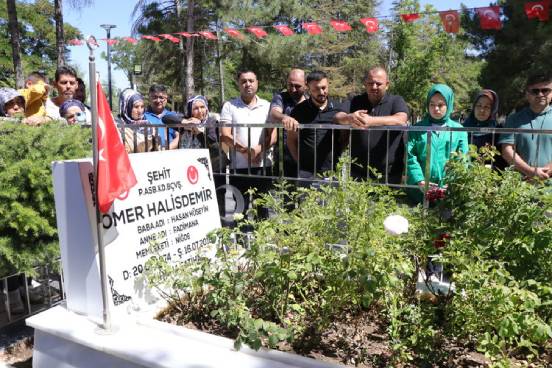 Şehidin Bor ilçesine bağlı Çukurkuyu beldesindeki kabrine gelen binlerce kişi, Kur'an-ı Kerim ve dua okuyor, kabrine su döküyor, Ömer Halisdemir'in o gece yaptığı kahramanlığı çocuklarına ve çevrelerine anlatıyor.
