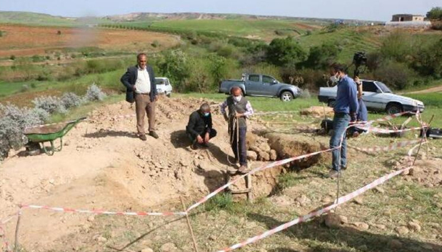 Kahta'ya bağlı Kangölü köyü kırsalında pazartesi bir iş makinesi toprağa saplandı. Göçük oluşan alanda iş makinesinin kurtarılması sırasında iskeletler fark edilince durum jandarmaya bildirildi.