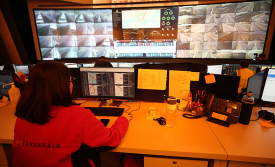 Çanakkale Deniz Zaferi'nin 107. yıl dönümünde 18 Mart 2022'de hizmete açılan 4 bin 608 metre uzunluğundaki 1915 Çanakkale Köprüsü'nün tüm ana ve alt sistemleriyle otoyol bağlantıları, Asya yakasında inşa edilen Ana Kontrol Merkezi'nden 331 kamera ve monitörle yüksek teknoloji sayesinde kesintisiz izleniyor.