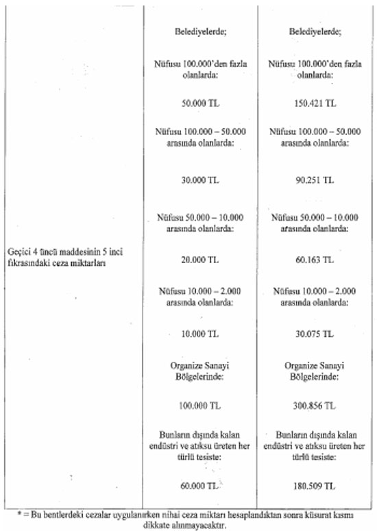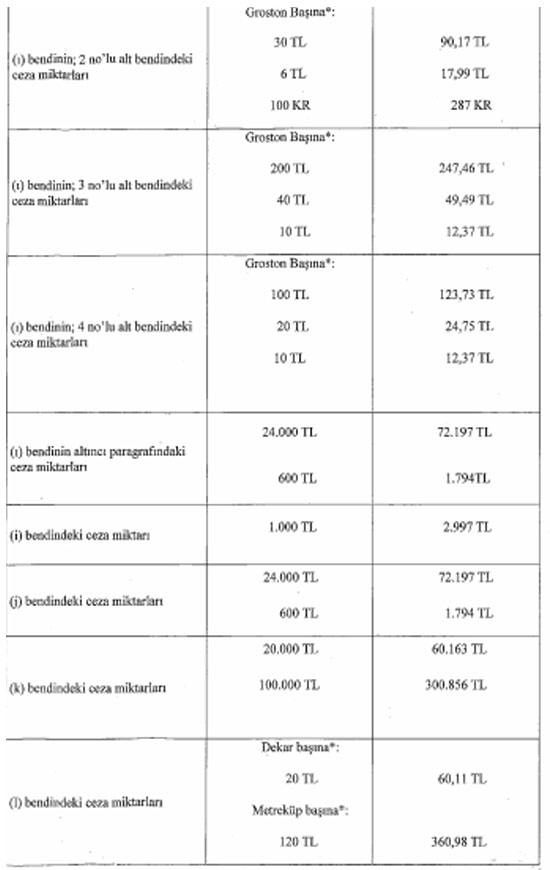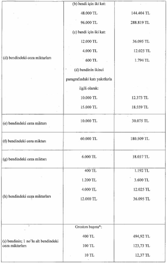 Yayımlanan tebliğin ekinde, uygulanacak ceza miktarları da şu şekilde verildi: