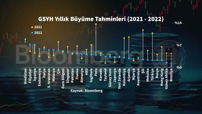 Bloomberg anketlerine göre 2022 yılında küresel ekonominin, 2021’de beklenen yüzde 5,8’lik büyüme performansı üzerine yüzde 4,4’lük bir rakamla büyüme ivmesi sürecek. 2023 ve sonrasında ise uzun dönemli yüzde 3,5’luk seyre dönülmesi bekleniyor. Dahası, 2022 yılında küresel ekonominin hükümetlerden ve merkez bankalarından görece sınırlı destek bularak kendini sınayacağı bir döneme giriliyor.