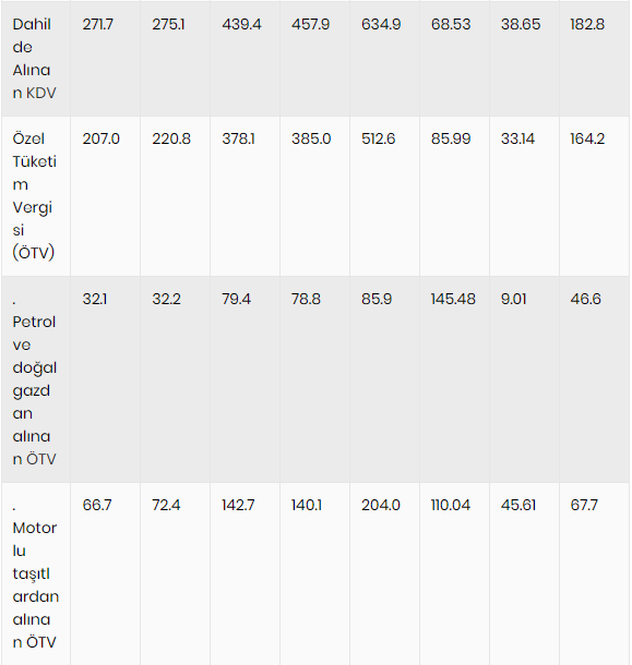 Enflasyon vergisi en fazla ithalde alınan katma değer vergisinde (KDV) hissedildi. Geçen yıl 261.9 milyar lira olan ithalde alınan KDV’nin, başlangıçta bu yıl 290.8 milyar lira olacağı öngörüldü. Ancak yılsonu gerçekleşmesinin 594.4 milyar liraya ulaşacağı tahmin edildi. İthal mallardan alınan KDV’de geçen yıla göre 303.6 milyar liralık artış yaşanacak.