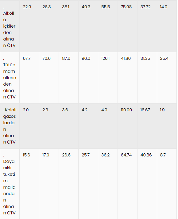 Tütün mamullerinden alınan ÖTV gelirleri 2021 yılında 67,7 milyar lira iken, başlangıçta bu yıl 70,6 milyar öngörüldü, ek bütçe ile de 87,6 milyar lira olarak revize edildi. Yılsonu gerçekleşmesinin, geçen yıla göre yüzde 41,8 artışla 96 milyar lira olması bekleniyor. Gelecek yıl da yüzde 31,3 artışla 126,1 milyar liralık gelir öngörülüyor.