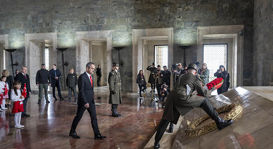 Özer'in mozoleye çelenk bırakmasının ardından saygı duruşunda bulunuldu ve İstiklal Marşı okundu.