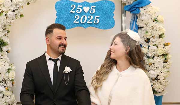 Evlenen çiftlerden Gizem Aktaş, nikah için 25.05.2025 tarihini özellikle tercih ettiklerini belirterek, "Zaten önümüzde iki tarih vardı. Bunlardan diğeri de 05.05.2025'ti. Biz, bugün için ancak bulabildik." dedi.