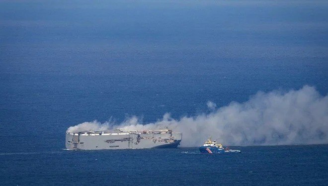 Almanya'dan Mısır'a otomobil taşıyan gemide çıkan yangının, 24 saatten fazla süre geçmesine rağmen hala söndürülemediği açıklandı