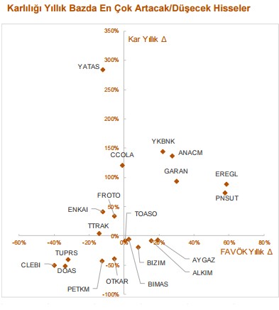 Bankacılık sektörünün hem kar büyümesi hem de karlılık iyileşmesi anlamında güçlü bir yıl yaşıyor. Ancak bu yılın ikinci çeyreğinde bankaların Visa pay satışları ile bir kereye mahsus gelirler elde ettiğini hatırlatalım. Bu nedenle bankaların üçüncü çeyrek net kar performansı bir önceki çeyreğe göre gerilemiş görülecek. Üçüncü çeyrekte bankaların net faiz marjları ve esas bankacılık gelirleri fonlama maliyetindeki gevşeme ve güçlü TÜFEX getirileri ile iyileşme kaydederken Visa pay satış gelirleri hariç tutulduğunda Vakıfbank, Yapı Kredi Bankası ve TSKB’nin çeyrek bazında net kar artışı açıklamasını bekliyoruz. Benzer şekilde Emlak Konut GYO’nun da net kar büyümesi önceki yılın aynı dönemine göre güçlü olarak devam ediyor ancak ikinci çeyreğe göre net karda düşüş bekliyoruz.