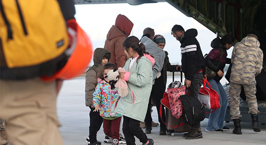 Tahliye taleplerinin ardından Adana'dan İstanbul'a getirilen, aralarında çocukların da bulunduğu 32 depremzede, kendilerini taşıyan uçağın havalimanına iniş yapmasının ardından buradaki askeri personel tarafından karşılandı.