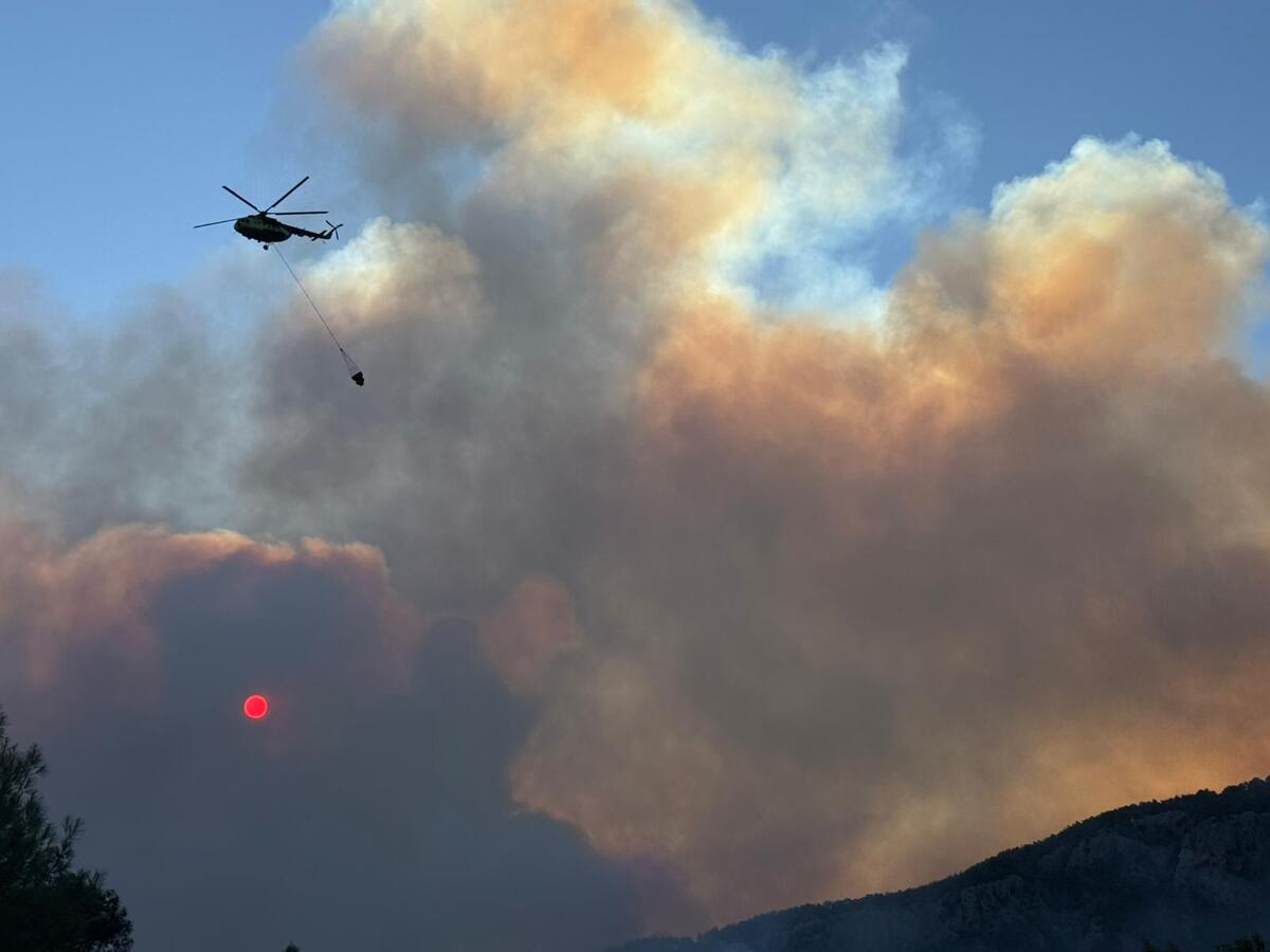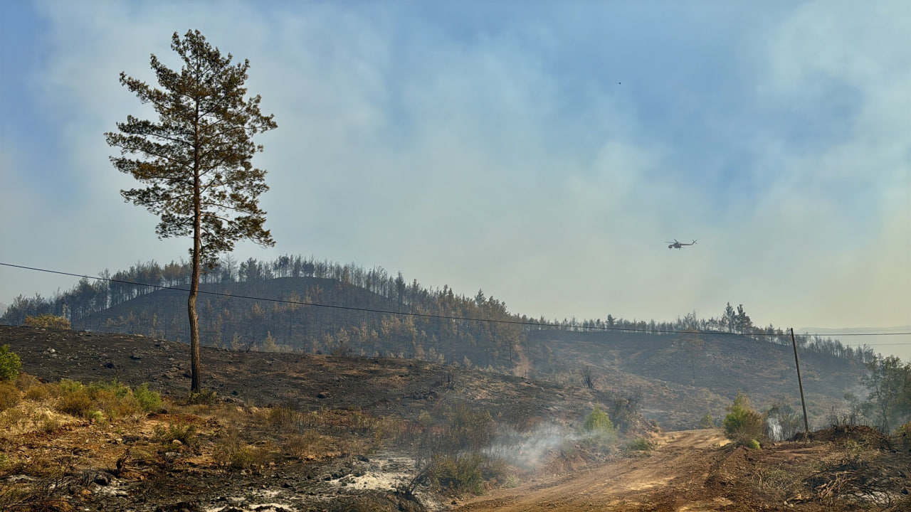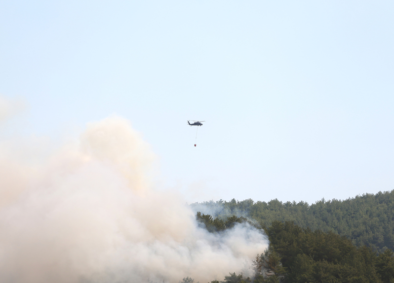 Yangına karadan ve havadan 2 helikopterle müdahale edildi.