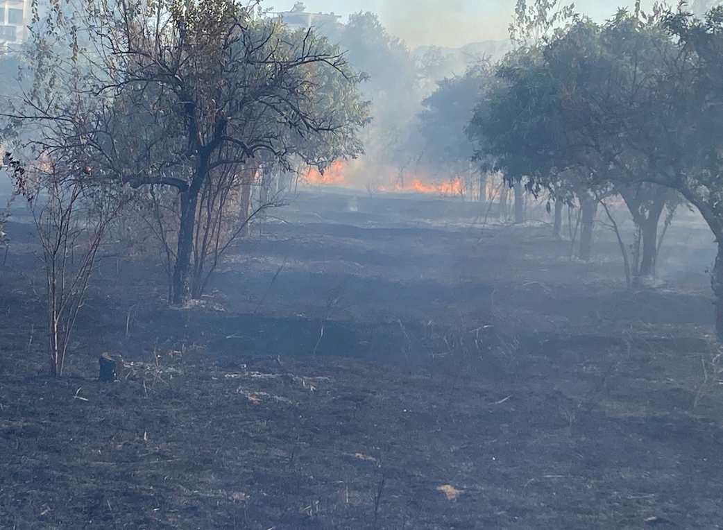 Yeşil Mahallesi'ndeki zeytinlik alanda henüz belirlenemeyen nedenle yangın çıktı.