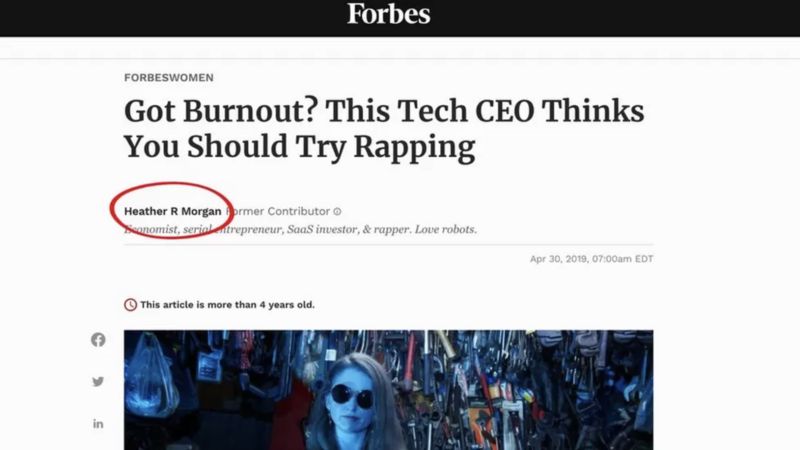 Razzlekhan ismiyle rap müzik videoları çeken Heather Morgan, kendini teknoloji girişimcisi ve rapçi olarak tanıtıyordu.