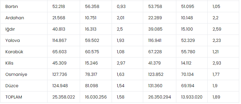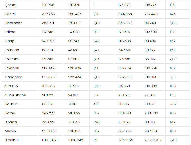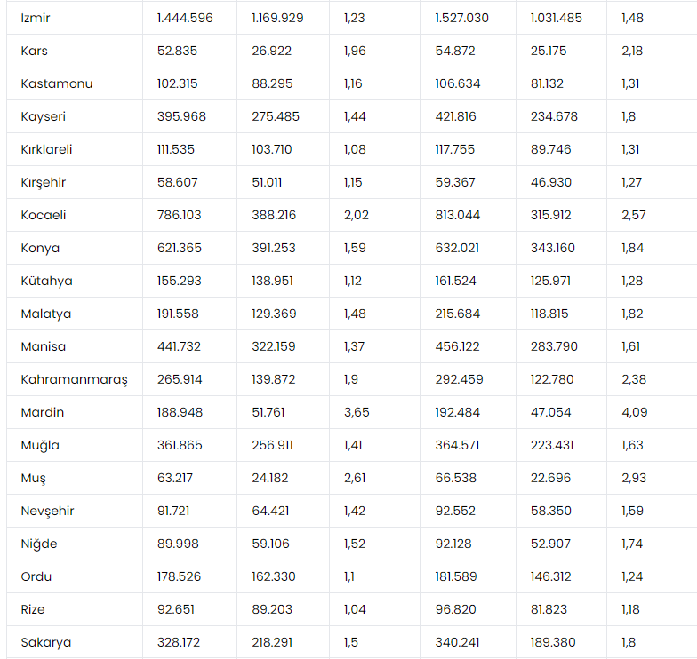 Amasya, Artvin, Aydın, Burdur, Çanakkale, Çorum, Edirne, Kırklareli, Ordu, Rize, Yozgat ve Karabük illerinde ise aktif / pasi oranı 1,1 ile 1 arasında değişiyor. Bu iller de yakın zamanda emekli sayısı aktif sigortalı sayısının üzerine çıkmaya aday görünüyor.
