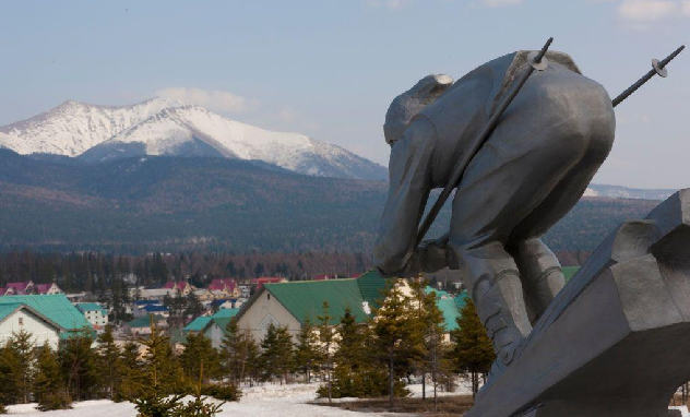 (Samjiyon'da, kayak yapan bir kişinin heykeli)