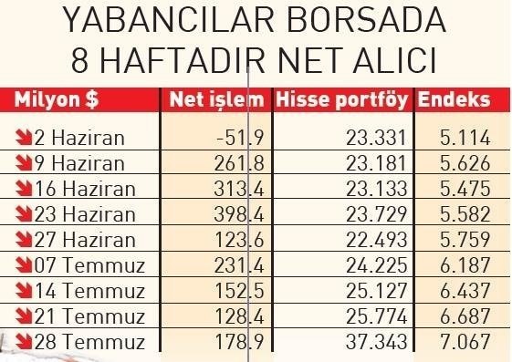 BlackRock yaklaşık 10 trilyon dolarlık, JP Morgan ise 4 trilyon dolarlık fon yönetiyor. Haberin etkisiyle Borsa İstanbul'da endeks 7.365 puana kadar yükselerek tarihinin en yüksek seviyesini gördü. Yabancı yatırımcılar 2 Haziran-28 Temmuz tarihleri arasındaki 8 haftanın tamamında Borsa İstanbul'da 1 milyar 788 milyon dolarlık net alım gerçekleşti. Böylece son 10 yılın en uzun alım serisi yapılmış oldu.