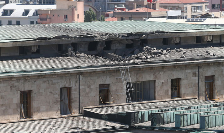 Vatandaşların direncini kırmak için her türlü yola başvuran darbeciler, bu kez Meclis'i hedef aldı. Eski pilotlar Hasan Hüsnü Balıkçı ve Uğur Uzunoğlu'nun kullandığı F-16'dan Meclis'e atılan bombayla 32 kişi yaralandı.