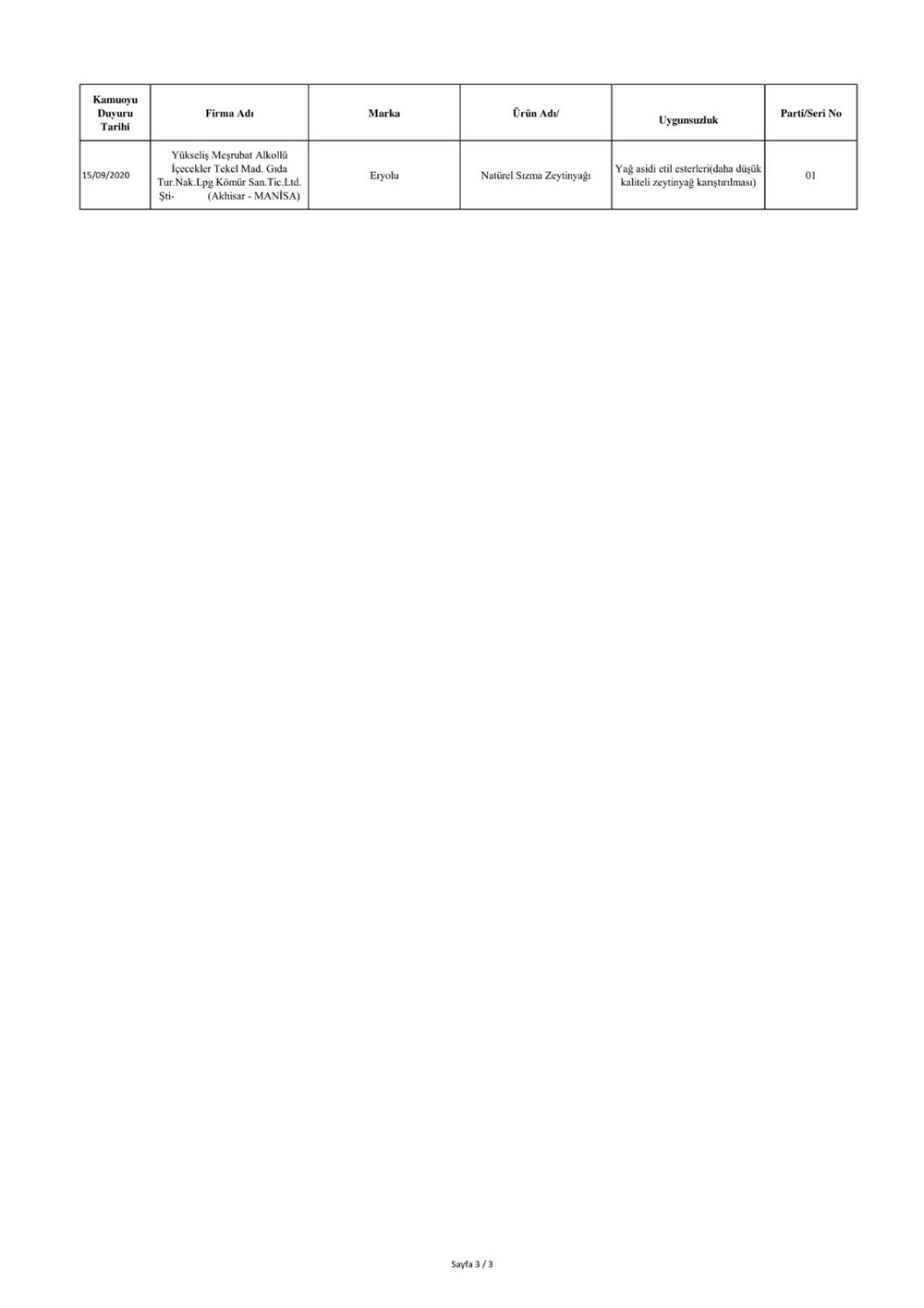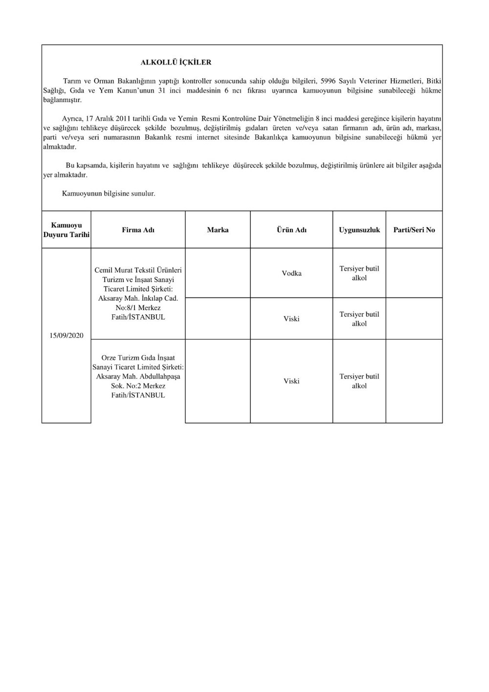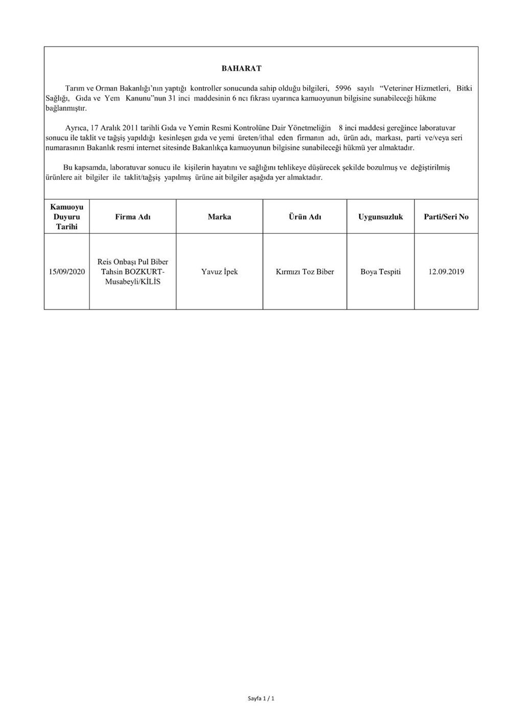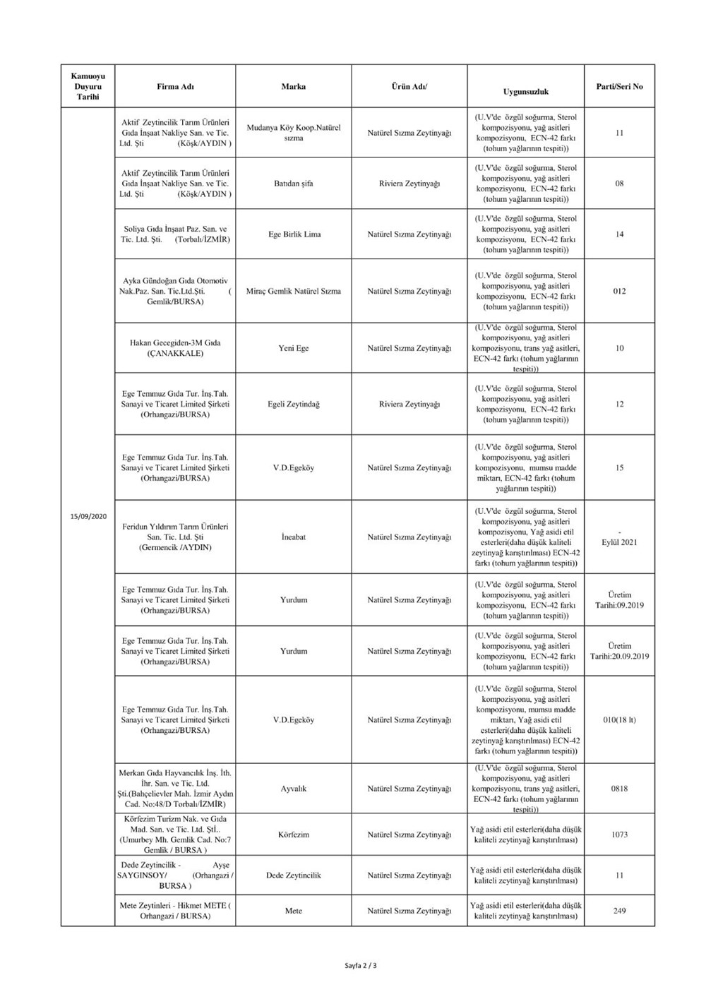 Tarım ve Orman Bakanlığı vatandaşın sağlığını korumaya, gıdada taklit ve tağşiş yapanlara göz açtırmamaya devam ediyor. Bu kapsamda, taklit, tağşiş yapıldığı veya ilaç etken maddesi ilave edildiği tespit edilen toplam 91 firmaya ait 113 parti ürün Bakanlık Gıda ve Kontrol Genel Müdürlüğü internet sitesinde kamuoyunun bilgisine sunuldu.