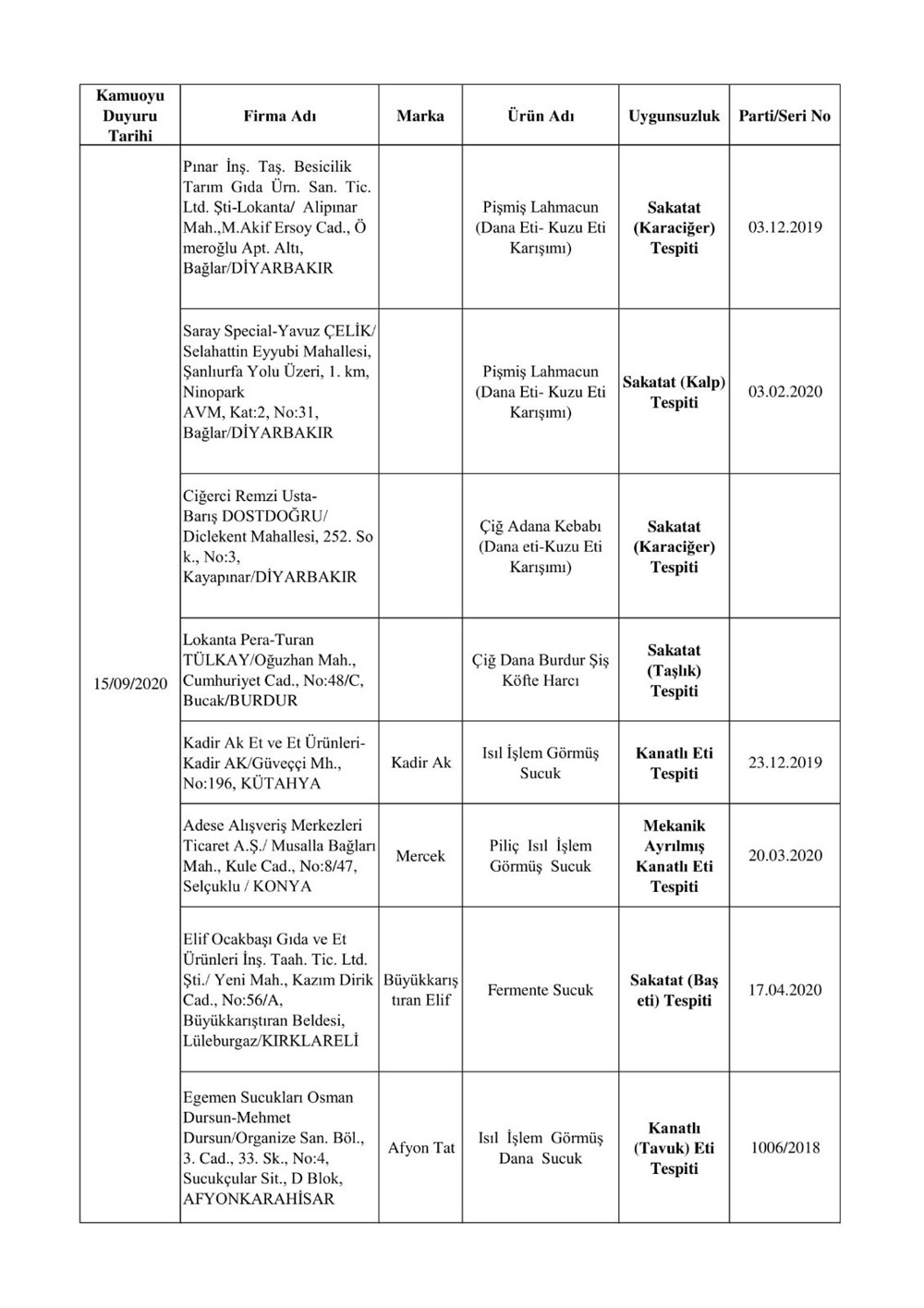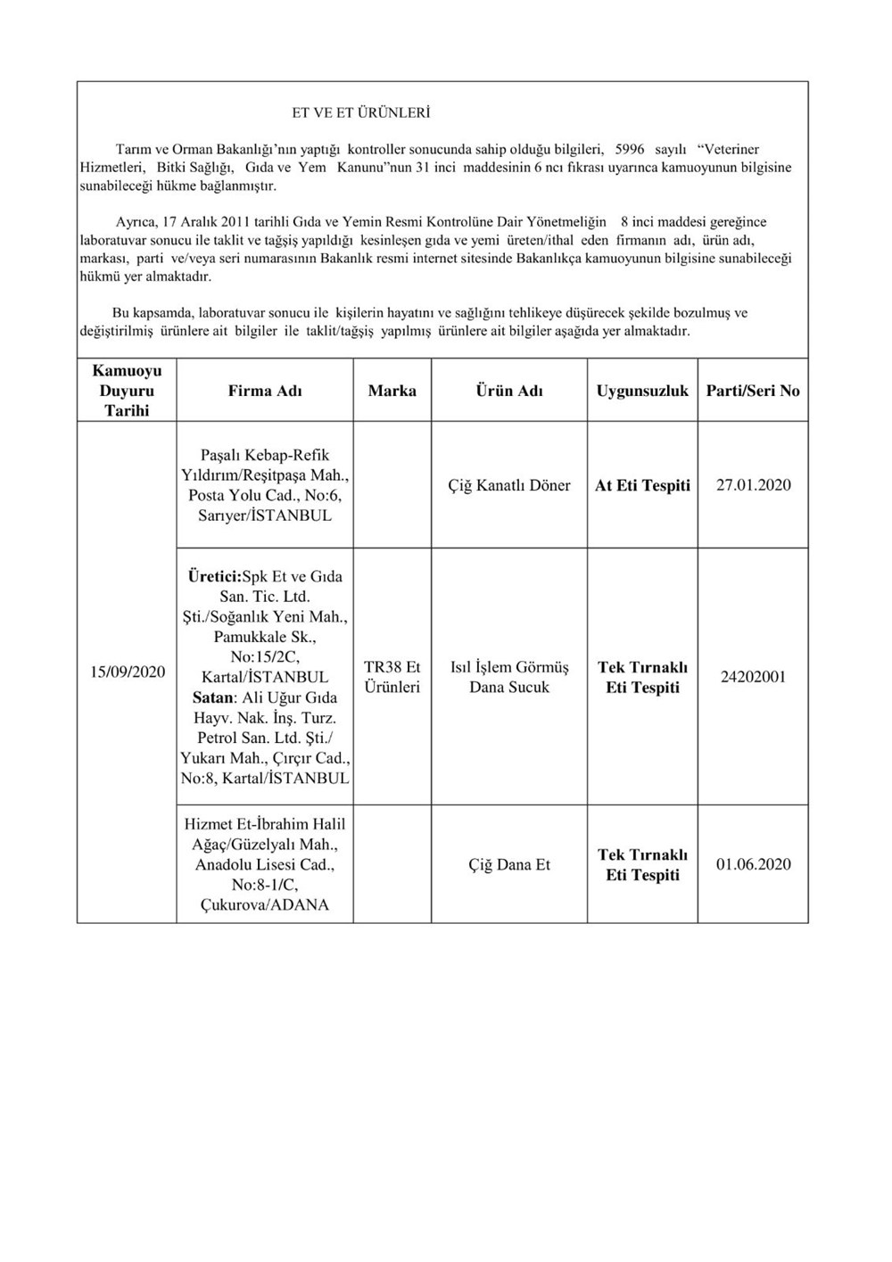 Vatandaşın sağlığı söz konusu olunca kimsenin gözünün yaşına bakmayacaklarını vurgulayan Tarım ve Orman Bakanı Bekir Pakdemirli, bu kapsamda son olarak 91 firmanın 113 parti ürününü ifşa ettiklerini duyurdu.