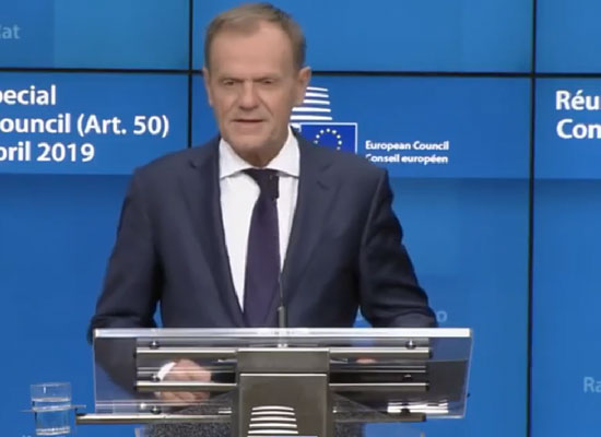 Bildirgede, İngiltere Başbakanı Theresa May'in Brexit tarihini erteleme talebine AB Konseyi'nin ayrılık anlaşmasının onaylanması için olumlu yanıt verdiği belirtilerek, "31 Ekim 2019'a kadar geçerli olacak erteleme, sadece gerekli olduğu kadar uzatılmalıdır. Eğer ayrılık anlaşması taraflarca bu tarihten önce onaylanırsa, Brexit bir sonraki ayın ilk gününde gerçekleşir" ifadelerine yer verildi.